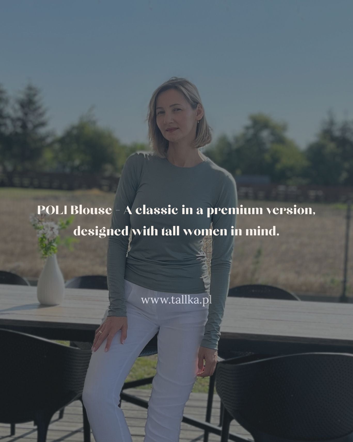 Some clothes are born out of necessity, but they stay in our wardrobes long after that need has passed. That’s exactly the story of Poli – the blouse I designed alongside the Alto trousers, when TALLKA was just taking its very first steps. Back then, I wanted to create a set that would look luxurious and elegant on a tall silhouette, while still being comfortable to wear from morning until night.