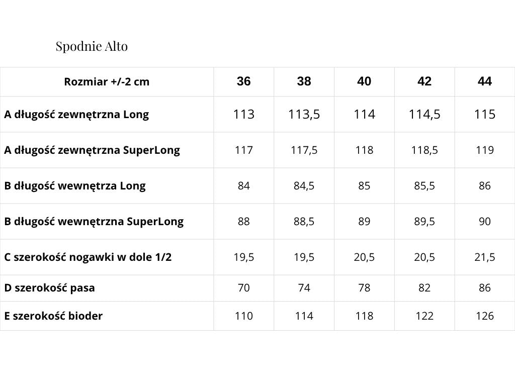 ALTO, czyli spodnie damskie typu cygaretki marki TALLKA to odzież stworzona dla wysokich kobiet. Ten model idealnie sprawdzi się dla kobiet +180cm wzrostu. Dzięki długości nogawek 85 cm oraz podwinięciu 4 cm dopasujesz te spodnie damskie do Twoich potrzeb.