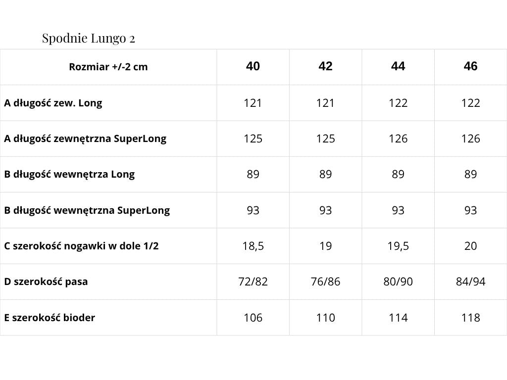 Poznaj spodnie LUNGO 2 na Gumce - eleganckie spodnie zaprojektowane specjalnie dla wysokich kobiet. Nowością w tym modelu jest elastyczna gumka z tyłu pasa, która ułatwia dopasowanie do sylwetki bez rezygnacji z klasycznego wyglądu z przodu.